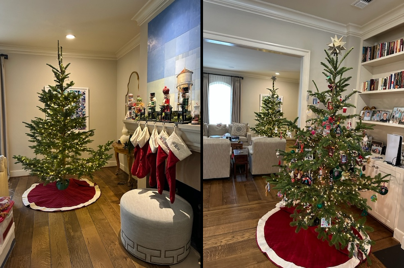 I put it on a riser but even before that it was taller than I expected!! It fits perfectly and I understand how carefully you try to match the Tree to the needs of your customers and you hit this one out of the park!! This is a truly loved, appreciated and pampered tree. Besides keeping it watered at all times, I keep a humidifier as well as a cool mister on it 24/7 due to the proximity of the fireplace.Seriously, I cannot Thank You enough! This whole experience has been a Joy, starting with our first conversation Chris, then the arrival with a young delighted UPS driver (Thrilled this was his first ever delivery of a christmas tree) to the set-up, decorating and just plain AWE!! I am a customer for Life!! May everyone at Tannenbaum have as Beautiful and Bright a Christmas as you've given us. Thank You ~ Teresa